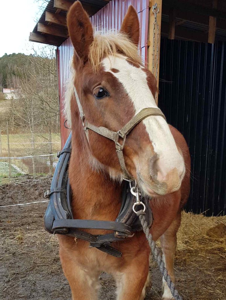 Det händer ganska mycket i lille Alfavills liv just nu. Vi varvar olika sortes träning för att få honom att utvecklas på flera plan samtidigt men också i en för honom lagom takt. Han är nu snart ganska exakt 7 månader gammal. Han är van vid att stå uppbunden, verka hovar och är lättlastad. Han har praktiserat körning vid sidan av sin mor sedan han var 2 veckor gammal. Han har erfarenhet av att ha enklare sele på sig. Att flytta för tryck åt sidorna och att backa för tryck är något som vi gör regelbundet i den vardagliga hanteringen. I helgen som var så har vi tränat på att få honom att gå i skaklarna på ett godtagbart sätt. Vi började med ”följa john” att han gick bakom sin mamma och gjorde precis likadant. Skaklarna fick agera cavaletti. Därefter så band vi Jonna en bit ifrån och han fick pröva på att gå in i skaklarna snett bakifrån från sidan. Efter lite repetion så flöt det på riktigt bra. Vi tog det även ett steg längre och lyfte skaklarna och la ner dom osv.
