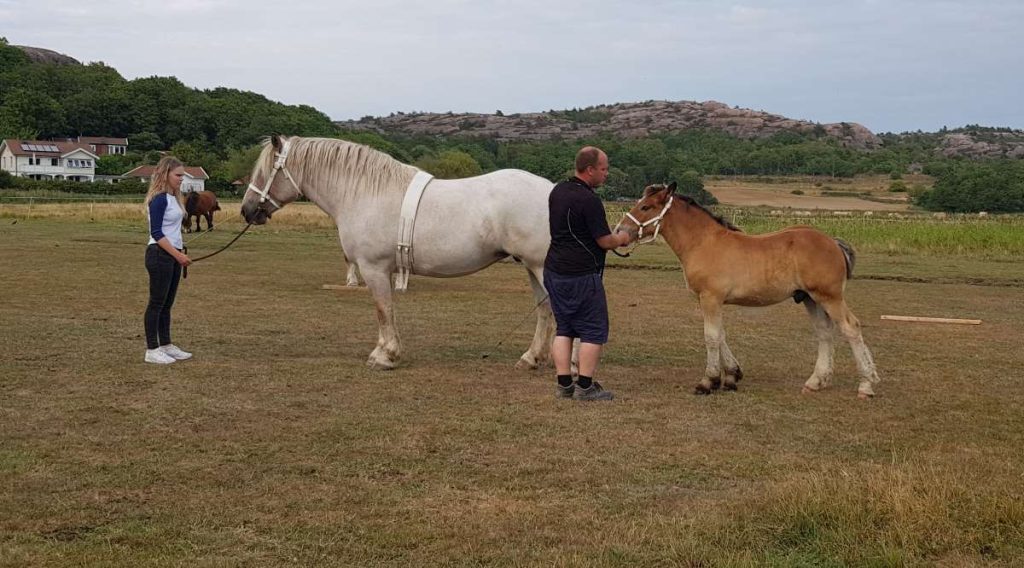 Riksutställningen är i år i Bollerup och vi har sedan i slutet av maj visningstränat Laterna och hennes hingstföl Astrovill. Tycker det har fungerat bra. Den som behöver träna mest är av naturliga skäl lille Astrovill. Han rör sig väldigt trevligt vilket är en fröjd att se. Laterna skulle behöva tappa några kilo men det har vi lyckats sämre med. Hon skoddes häromdagen för att hon nu innan ska hinna bli bekväm i sina skor. Vi behöver ta tag i hennes man också och tunna ut den nu innan Riksutställningen. Förra året var Jonnas man en mardröm och jag fick ett utbrott och klippte av stora partier man. Det hjälpte för humöret för stunden men man fick vackert njuta av den mycket speciella frisyren sedan resten av hösten och vintern. Fick tips av en bekant om en grymt bra trimkniv som även jag verkligen kan rekommendera. Men akta fingrarna för den är rejält vass. Bussen är bokad och boende är bokat. Med oss i år har vi vår duktiga medhjälpare och vän Vilma.