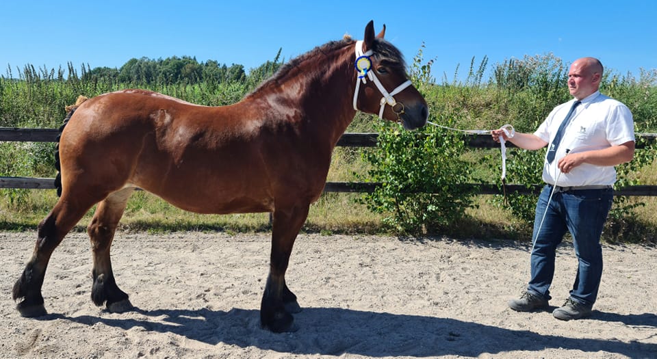 ”Utmärkt rastyp och välutvecklad. Vackert huvud, något bred hals, i övrigt en bra sida. Aningen tåtrång fram. Ledig taktmässig skritt. Lätt naturlig trav.”